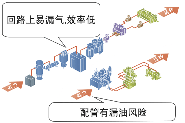 電動化系統構成簡單,設置維修也簡便。僅需連接驅動電源線,無需液壓配管,不存在本體和配管的漏油風險。