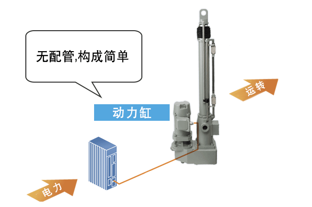 與現有產品推力相同,小型輕量。最適于使用一臺電機同步運行復數臺動力缸的場合。