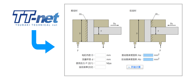 可使用網上的推力計算,將液壓缸的輸出力換算為動力缸概略推力。