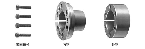 KE系列產(chǎn)品由內(nèi)環(huán)、外環(huán)及緊固螺栓3個零部件構(gòu)成,通過擰緊緊固螺栓以實現(xiàn)強(qiáng)力緊固。